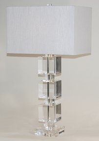A column of stacked cubes of solid, clear glass, this contemporary lamp has a clean look and an Art Deco vibe.